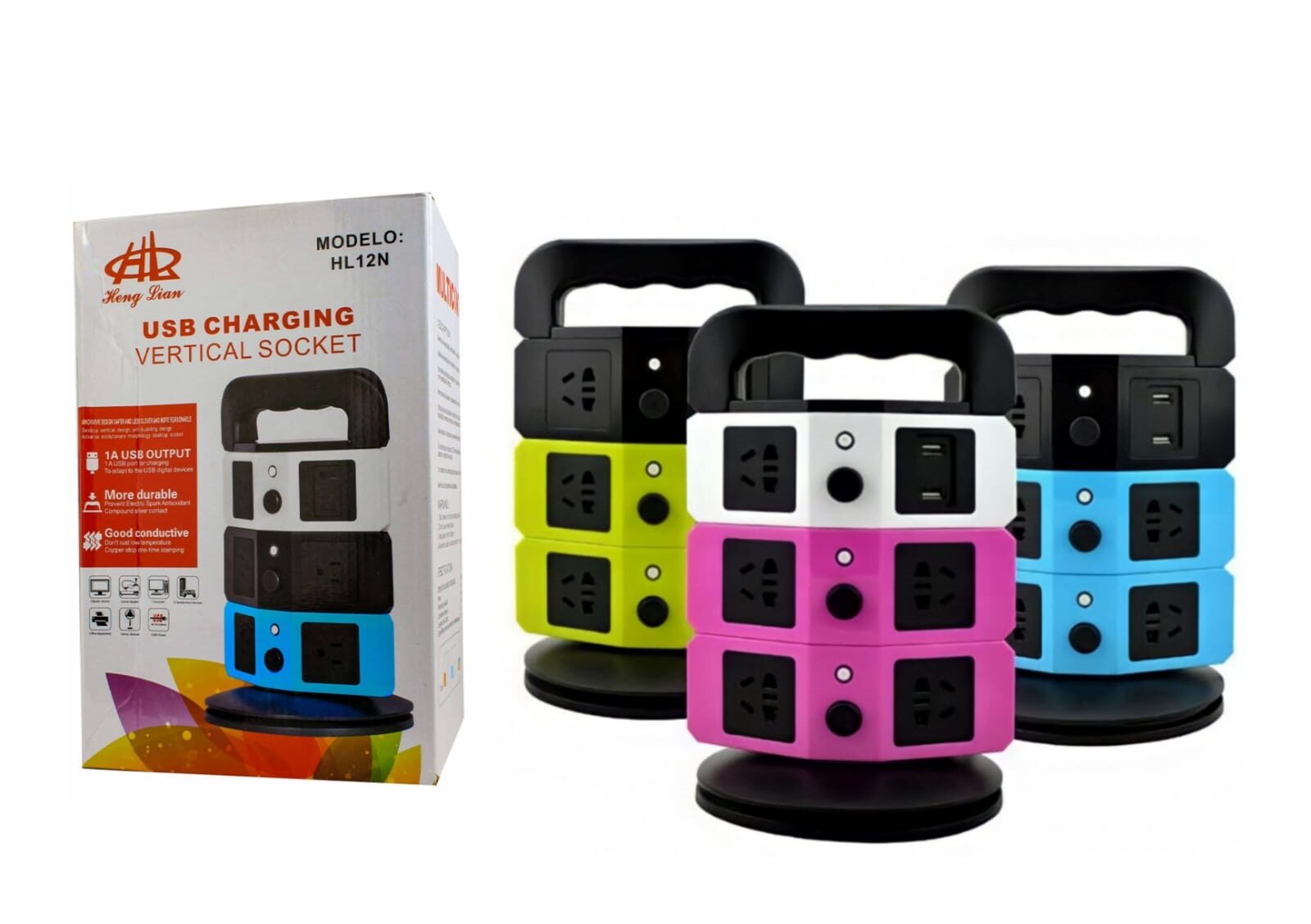 Multitoma Corriente Vertical 8 Tomas Y 2 Cargador Usb